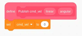 We need to reset our variable before publishing, so we need to add Set block from Variables panel, to our Publish cmd_vel block. From the list choose your variable (in our case cmd_vel) and for the value type 0.