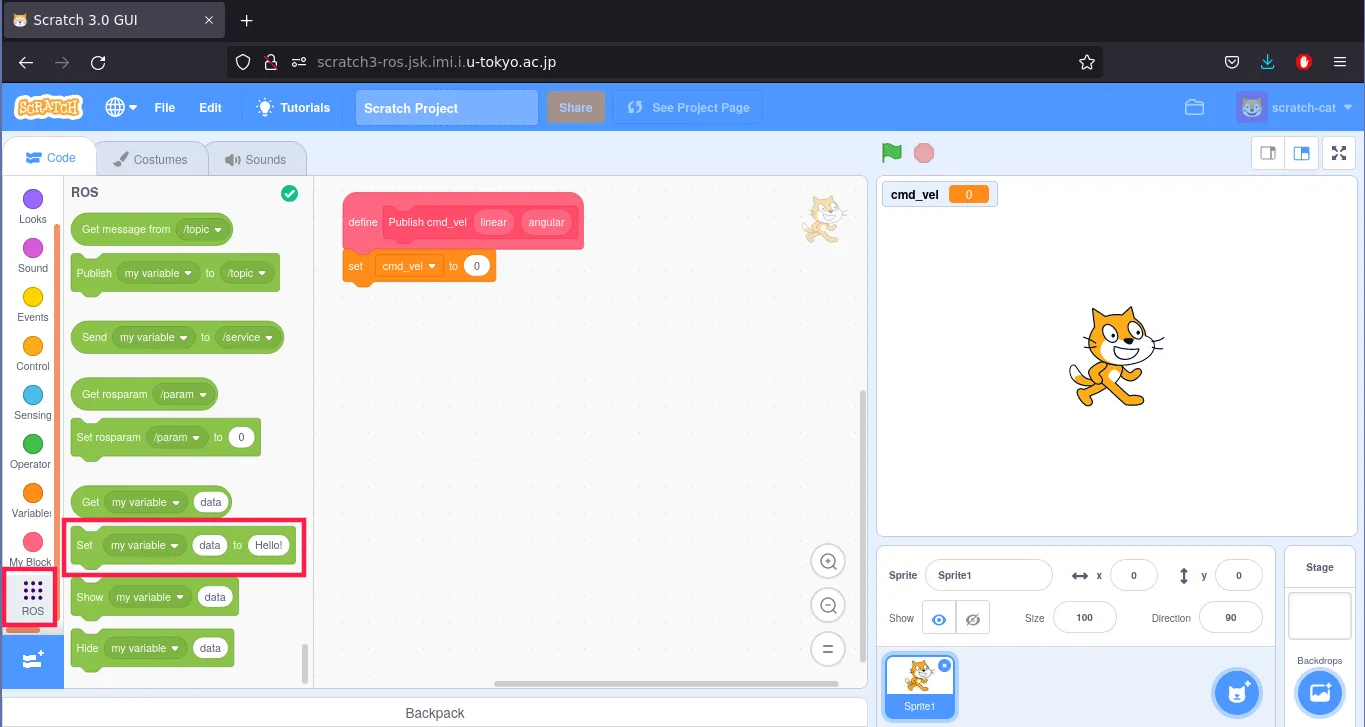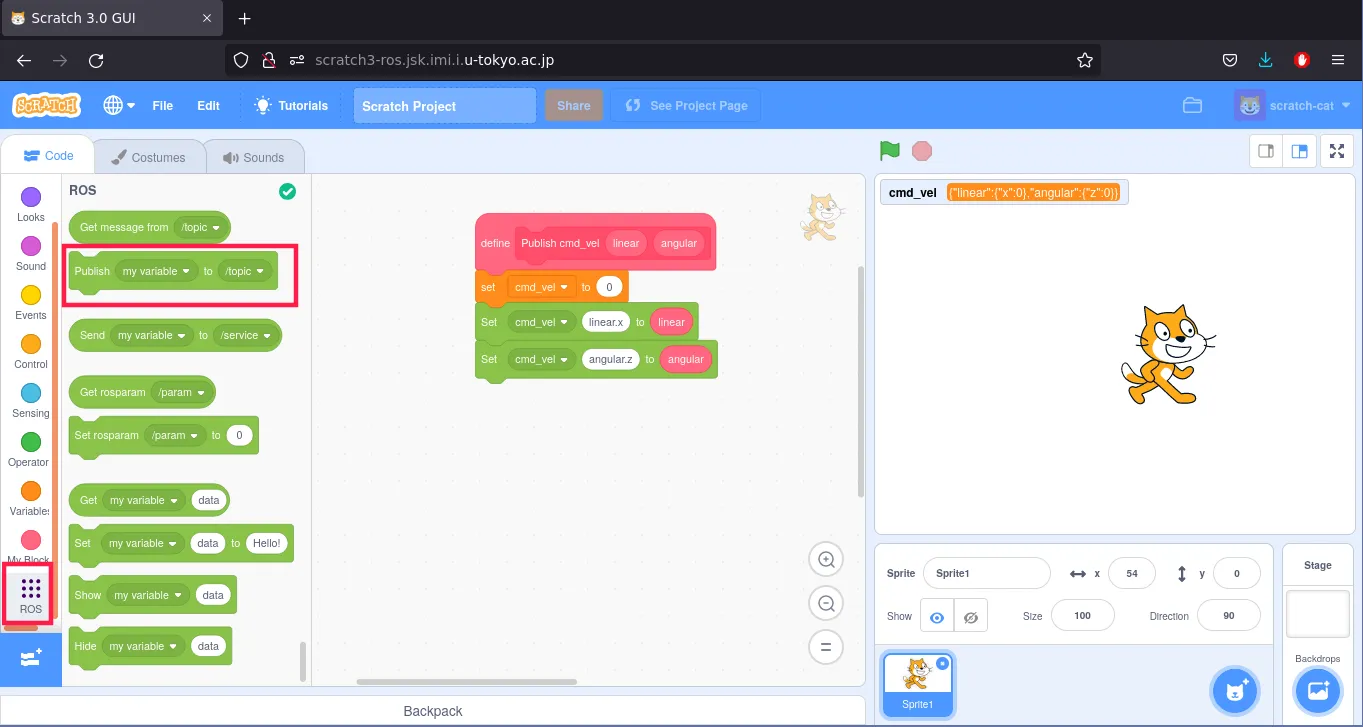 When connected to the rover's access point, you can launch Scratch 3.0 GUI.
