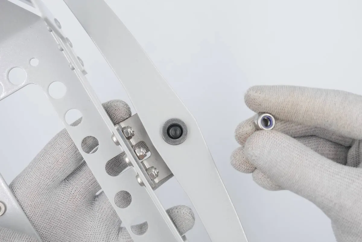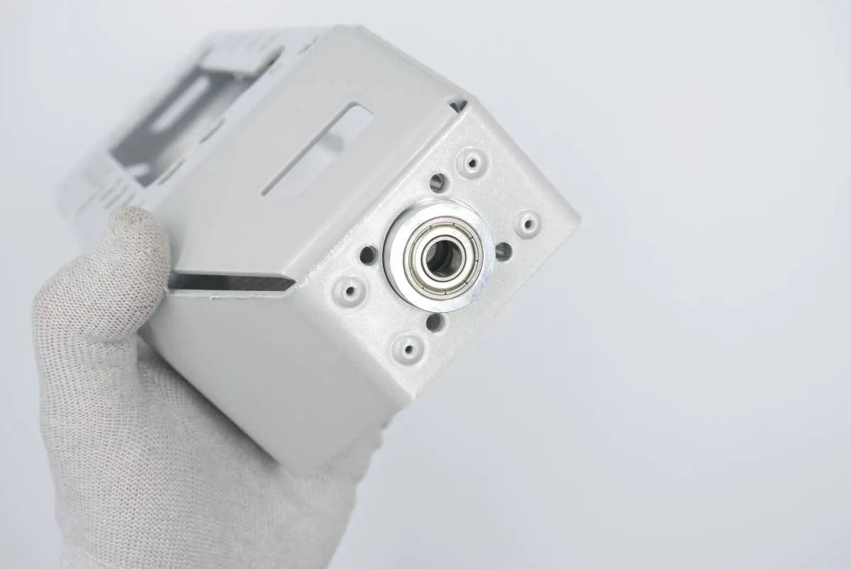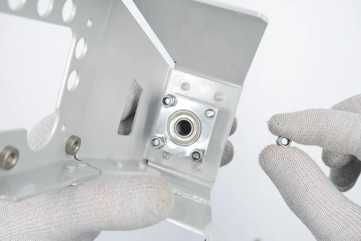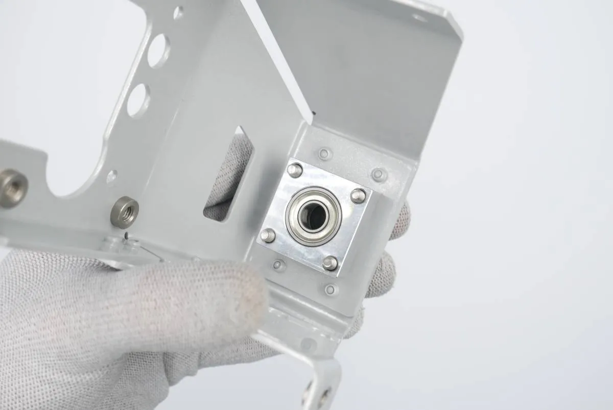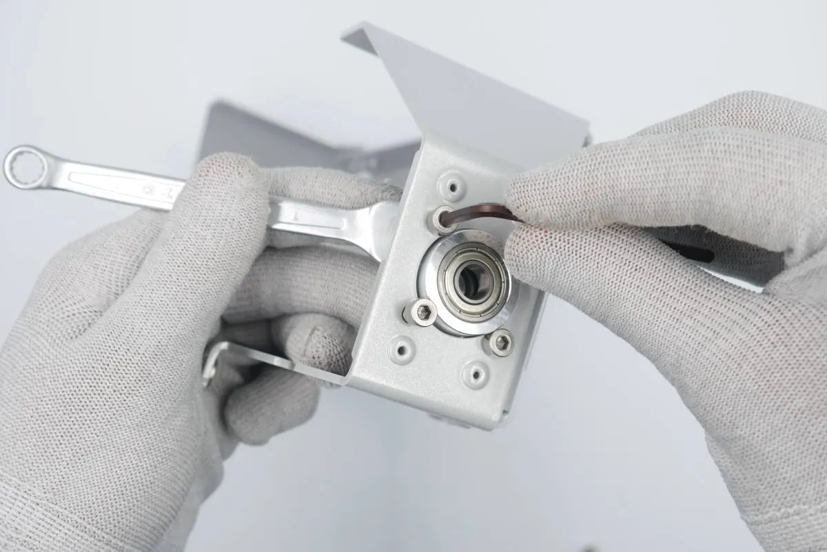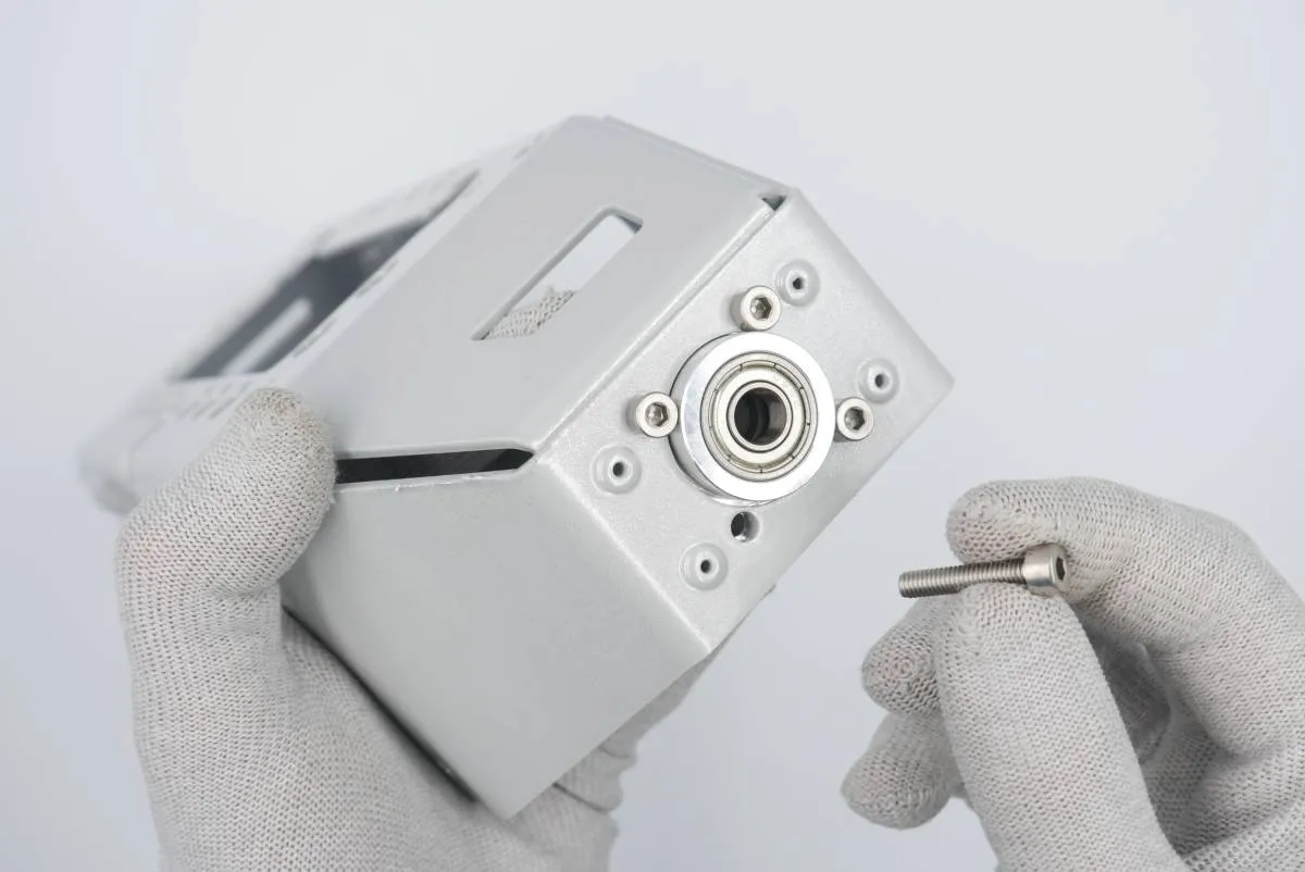 Insert the aluminum housing with bearings in a corresponding opening in the main frame.