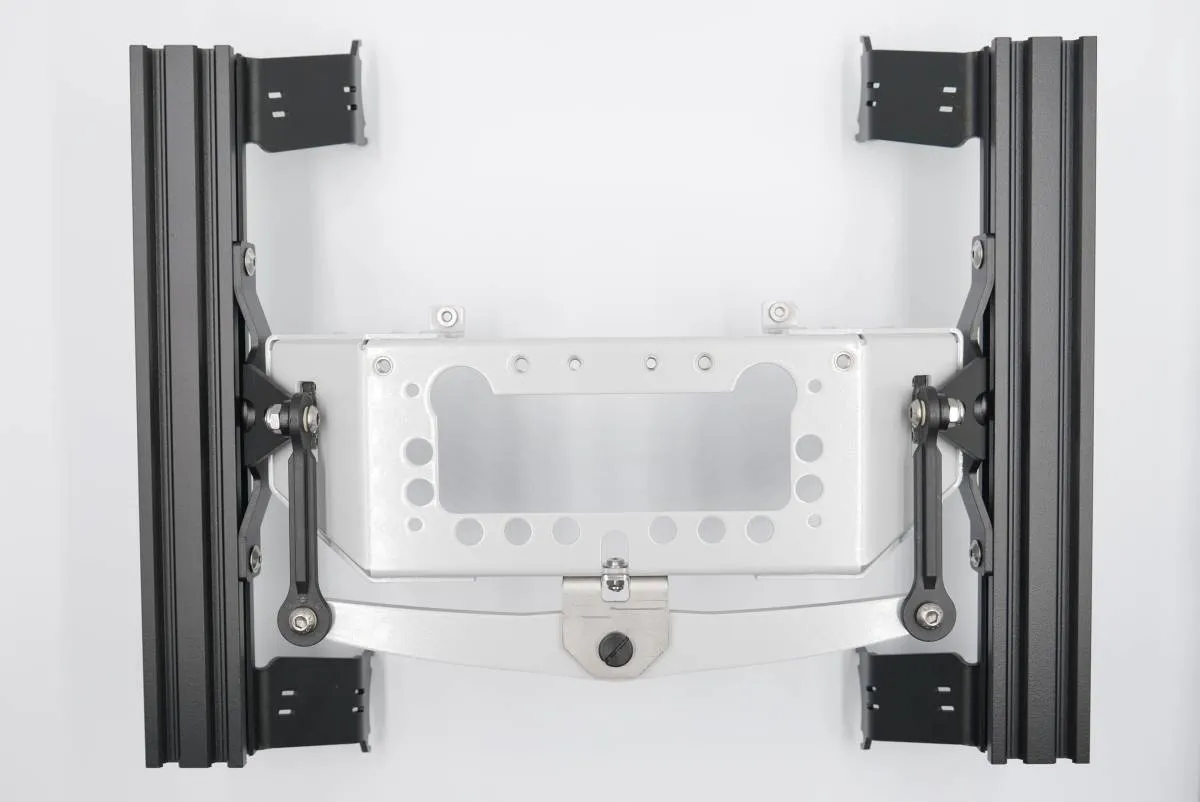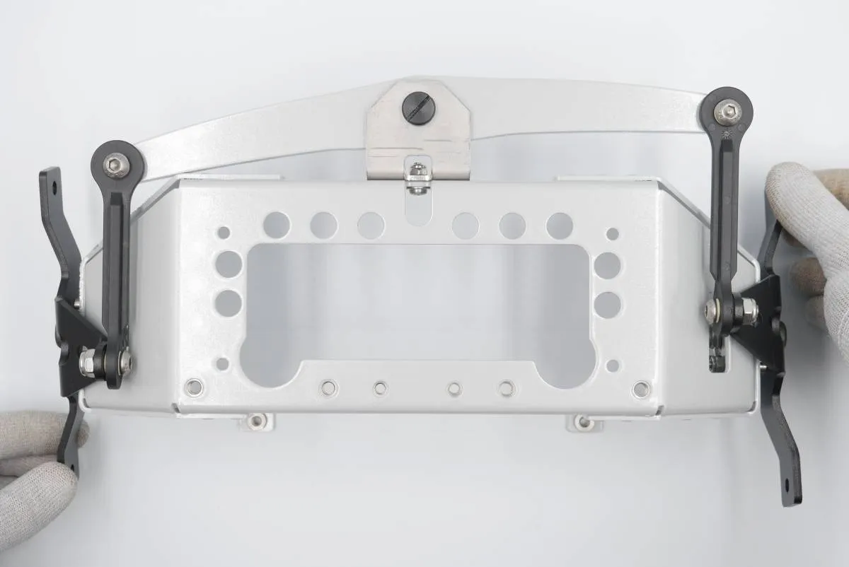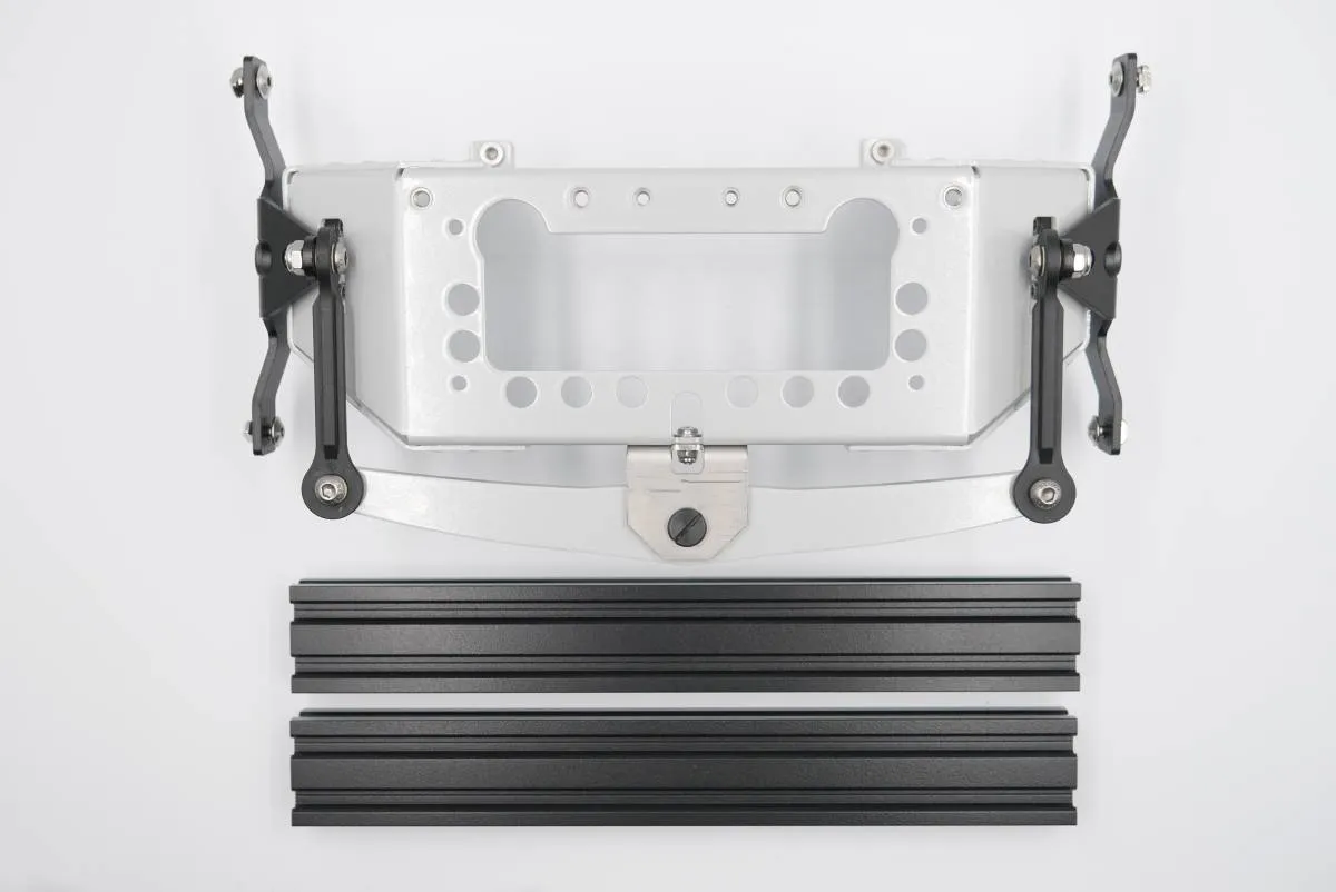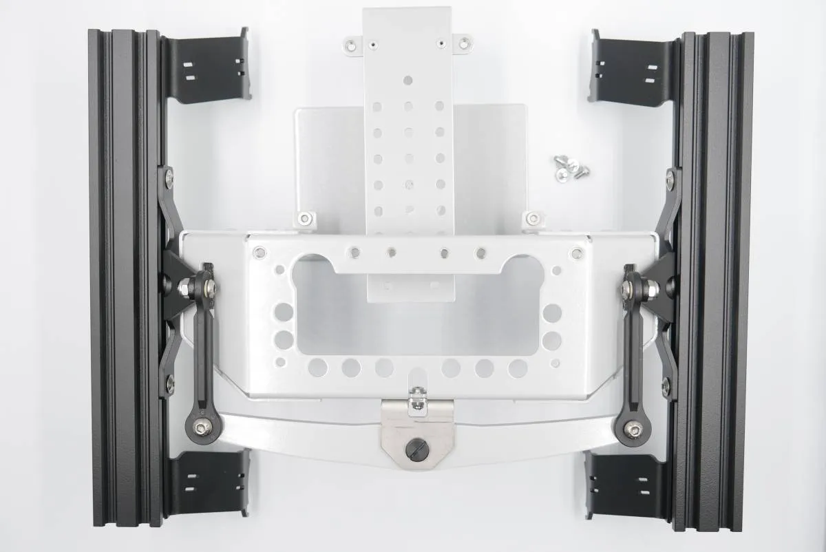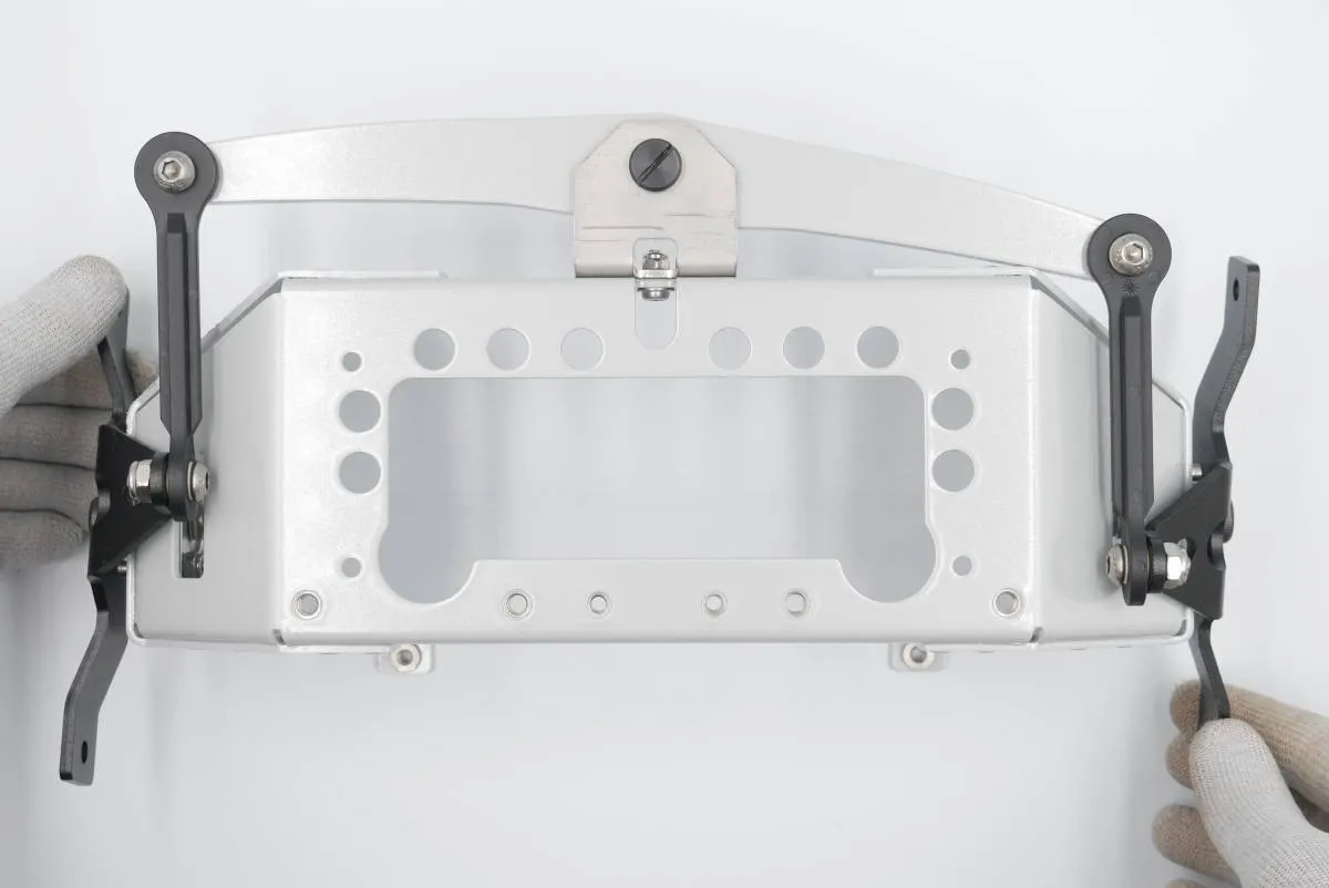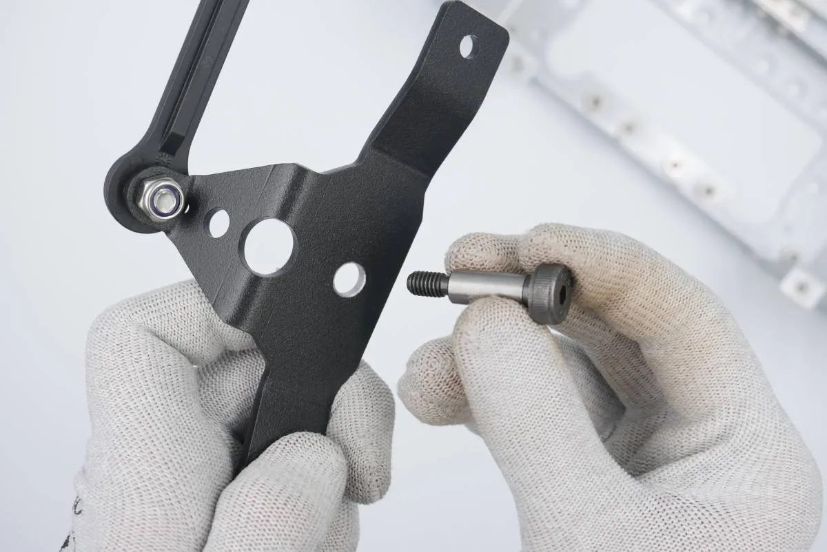 Attach each of the wheel holders at the ends of the suspension beams, with the holders protruding outwards. Secure them by tightening the screws with a 4mm hex key.