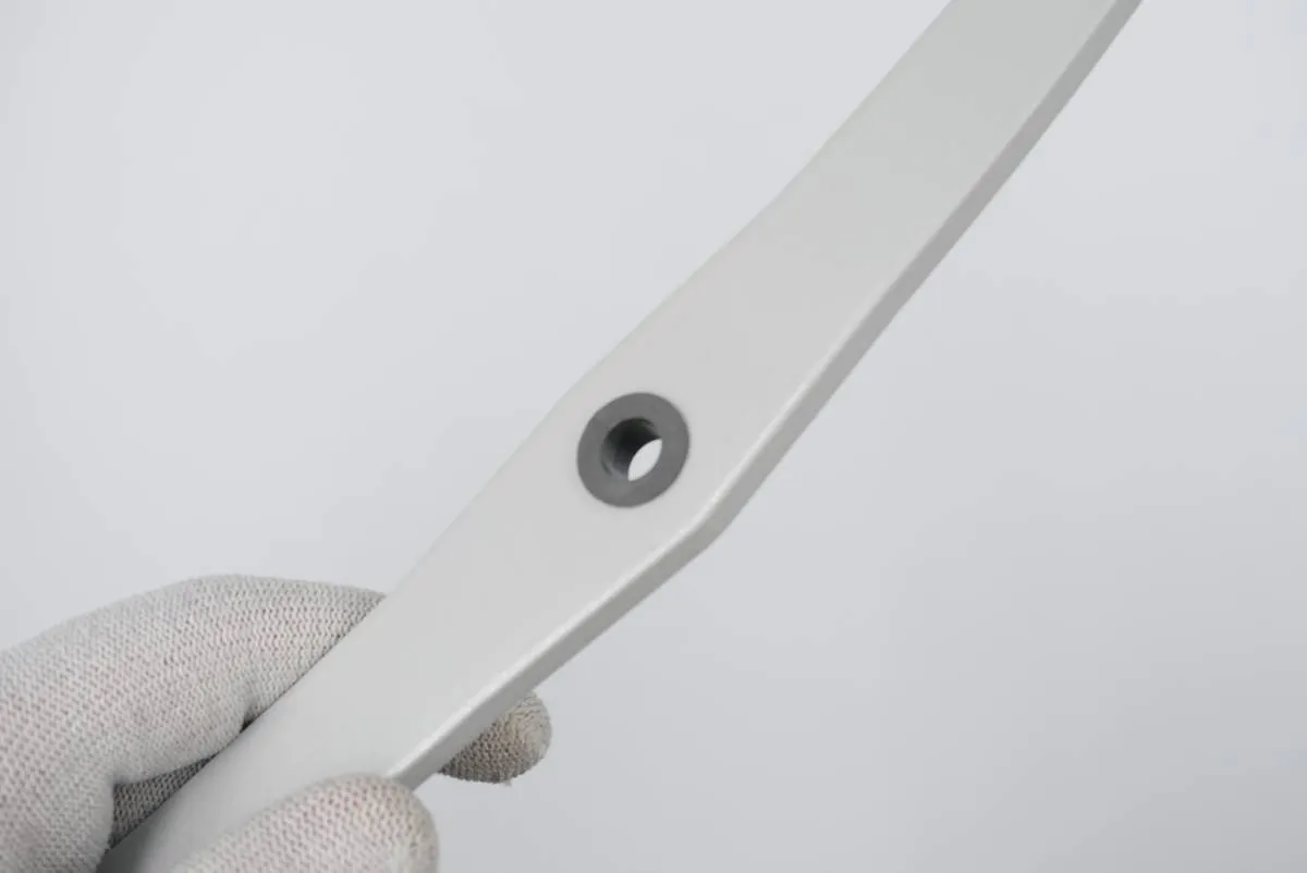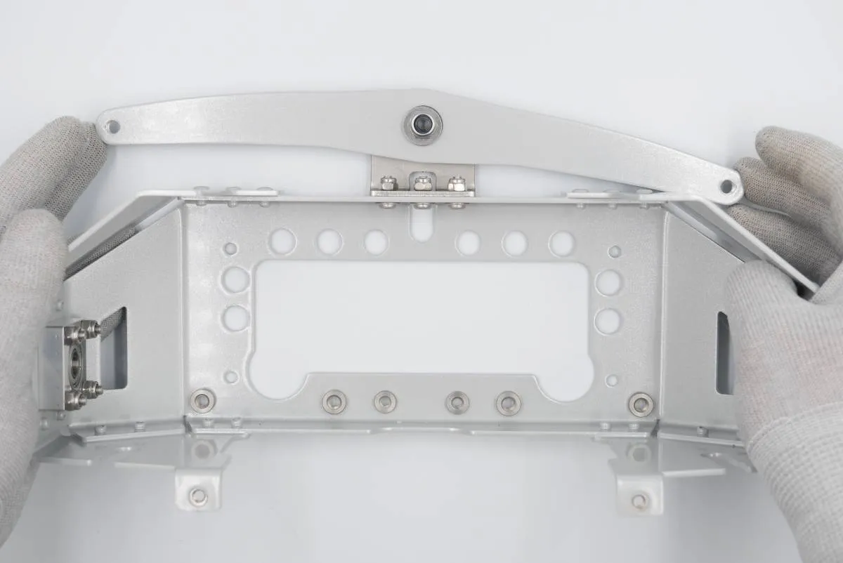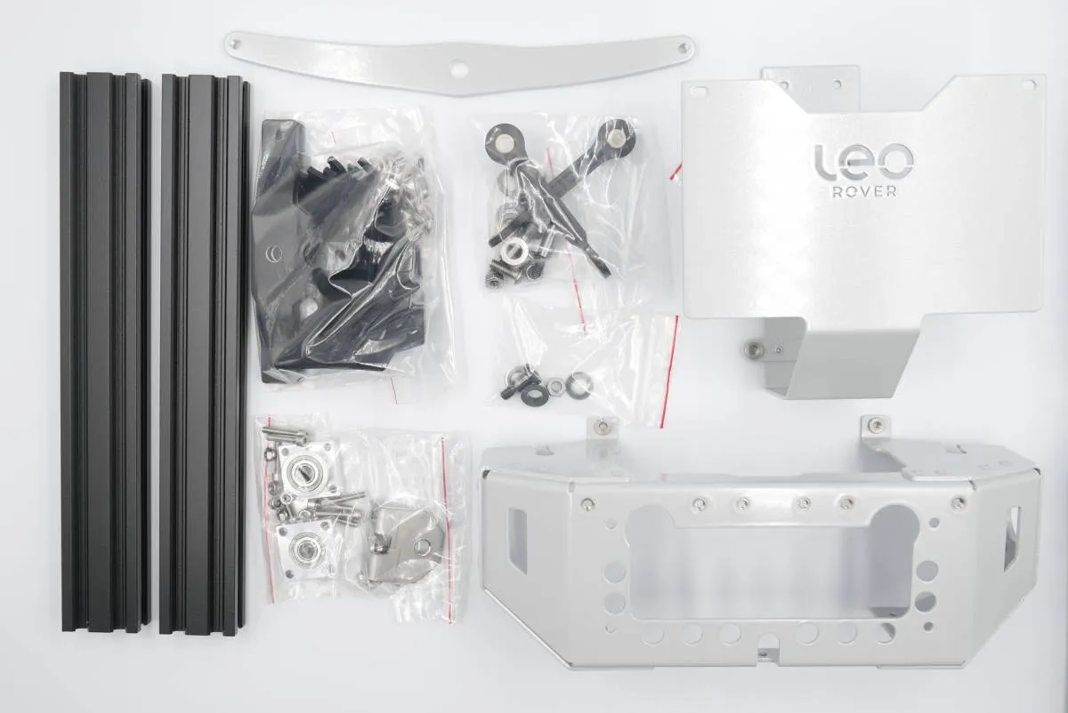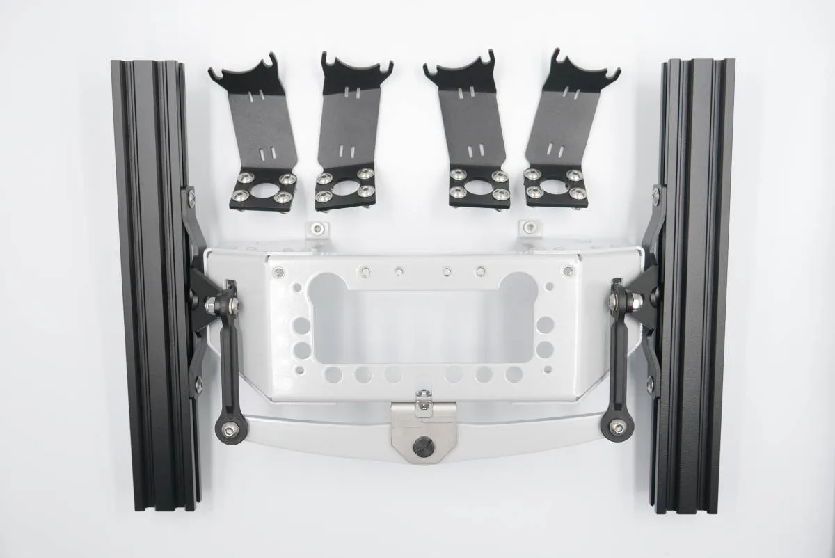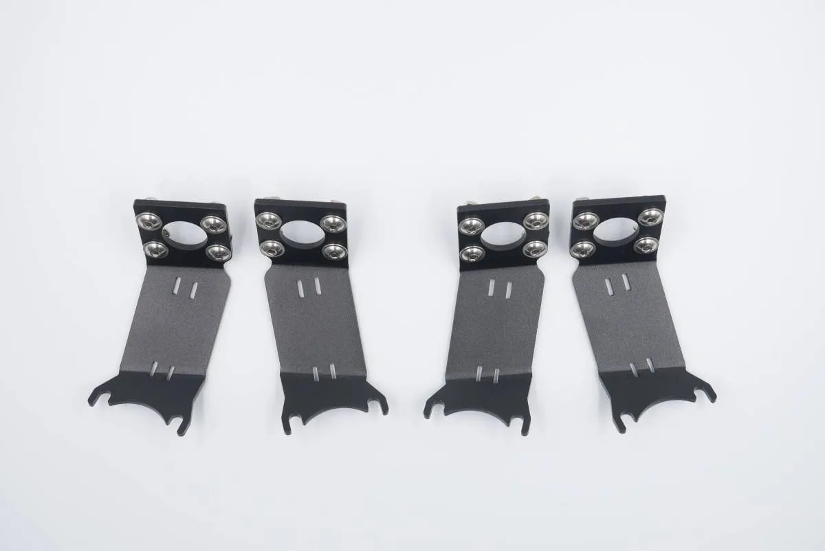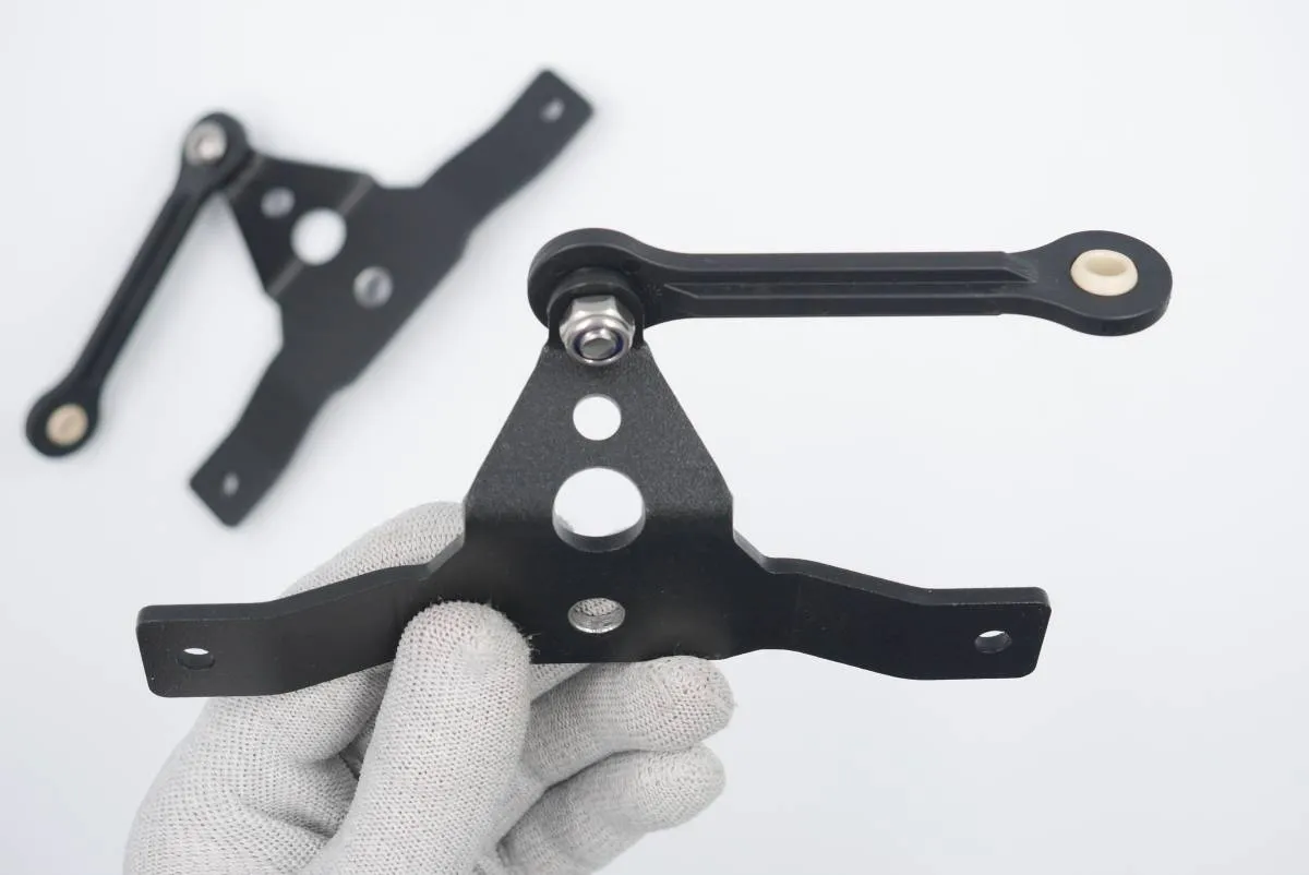 Attach each of the wheel holders at the ends of the suspension beams, with the holders protruding outwards. Secure them by tightening the screws with a 4mm hex key.